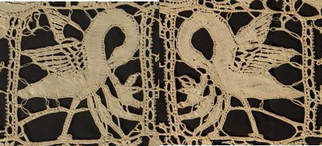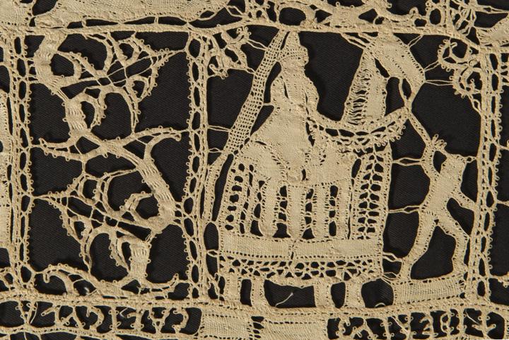 It is unlikely that the lacemakers working the pictures had more than a sketched outline as a pattern, possibly drawn on unbleached linen; as they were not tied to a pricking, they were able to work freehand – taking threads where they needed to go. The best could ‘draw’ with their threads, in the same way that a skilled artist can draw with a pencil or painted line.